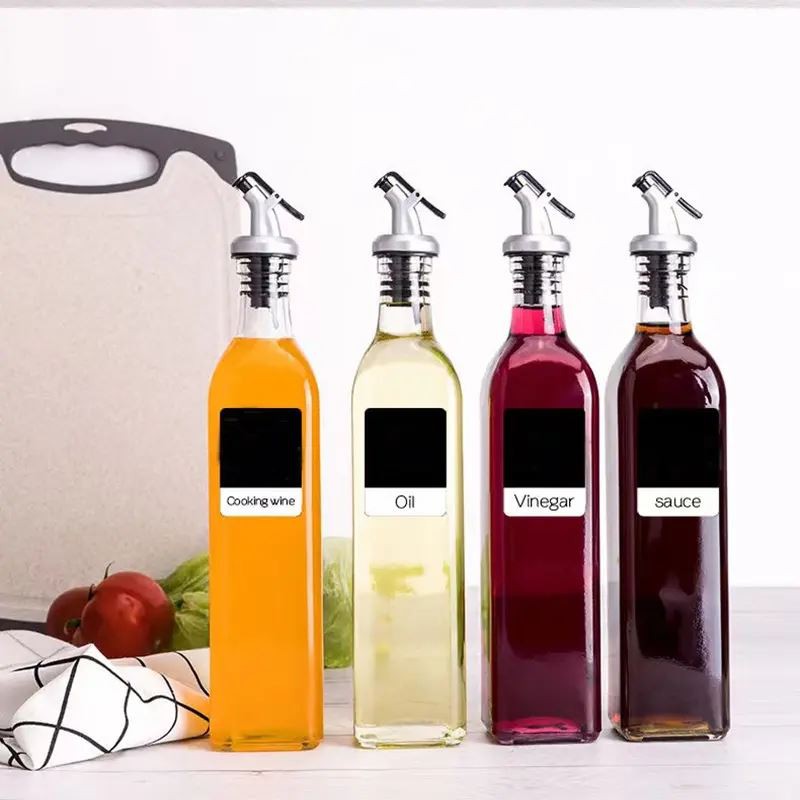Le nostre bottiglie per olio in vetro trasparente quadrate e rotonde sono perfette da esporre sugli scaffali o come parte di un set sul tavolo da pranzo. Che tu stia cercando di conservare il tuo olio d'oliva o aceto preferito, questi contenitori in vetro per alimenti sono la scelta perfetta.